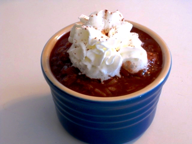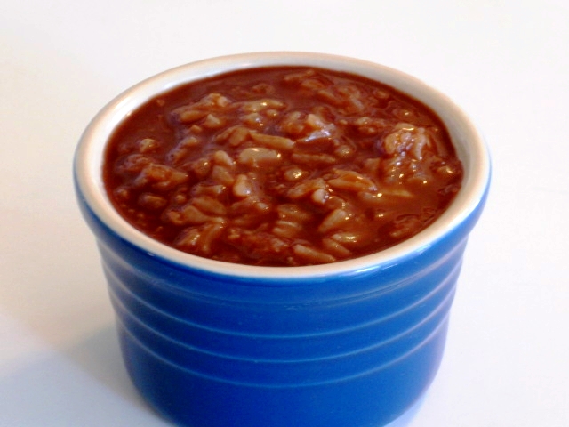 Start with a cup of sweet rice. Rinse thoroughly. Place in pot and bring to boil with 6 cups of water. Once boiling, reduce heat to simmer, stirring occasionally to avoid clumps and burning. Once rice is cooked, pour out most of the water but leave just enough so it’s not dry. At low heat, stir in 2 tablespoons unsweetened cocoa. Stir until cocoa is well mixed. Remove pot from heat. Serve warm and enjoy by adding sweetened condensed milk or whatever you prefer to sweeten with (fruit, nuts, honey,etc).