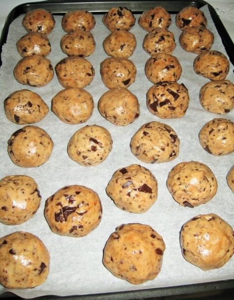 Chocolate Chip Cookie Dough Balls are here! Posted on April 12, 2015 by Melody Yes, all! We made egg-less chocolate chip cookie dough balls. Shaved dark chocolate and semi-sweet chocolate throughout moist cookie dough makes this so delicious! Then, we coated them each in dark chocolate and organic, creamy peanut butter. Share this: Click to share on X (Opens in new window) X Click to share on Facebook (Opens in new window) Facebook Like Loading... Related