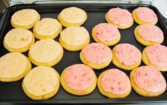 Look what we’ve been baking. These soft orange sugar cookies are under-baked to perfection. We added freshly grated orange rind into the cookie mix. We made 2 kinds of frosting — one with orange extract and vanilla and orange marmalade, the other with maraschino cherry juice and finely chopped maraschino cherries. The result? Extra awesome. These are a must try and everyone at home loves them.